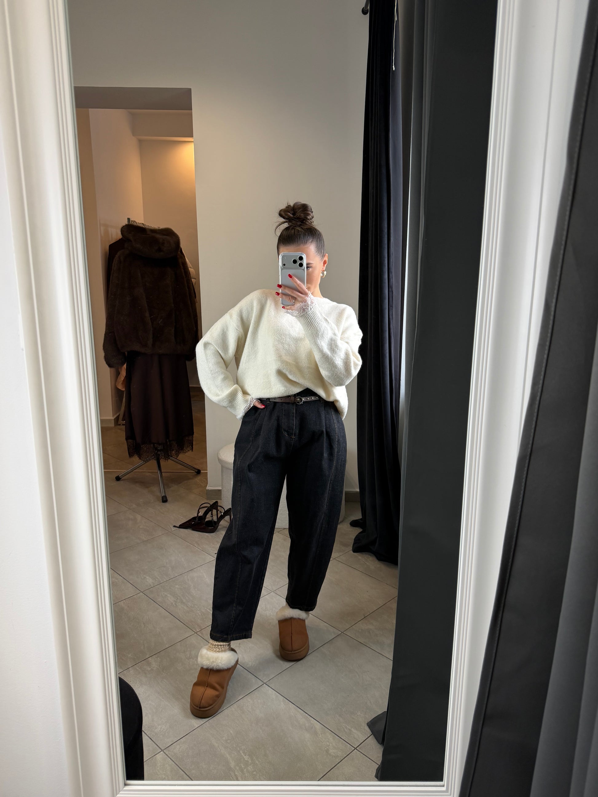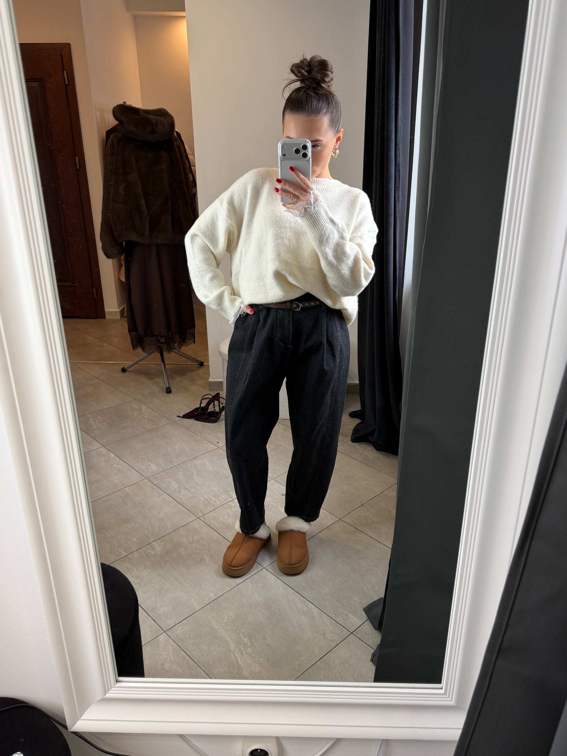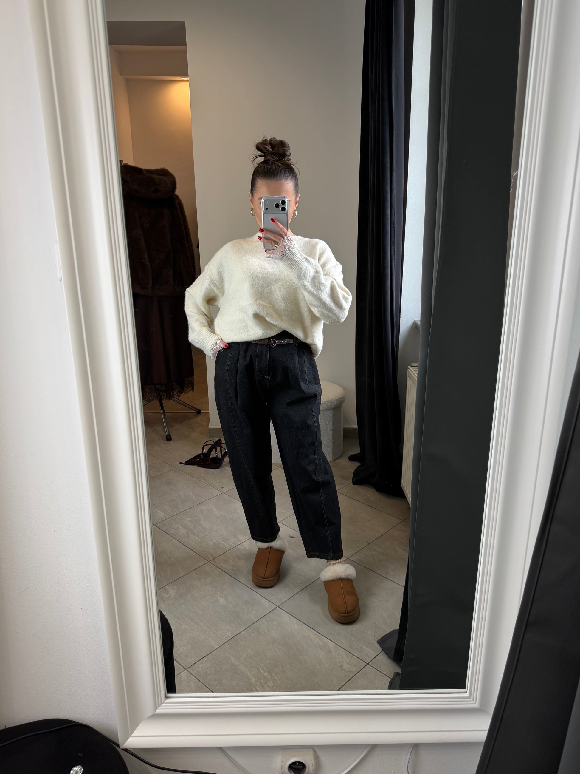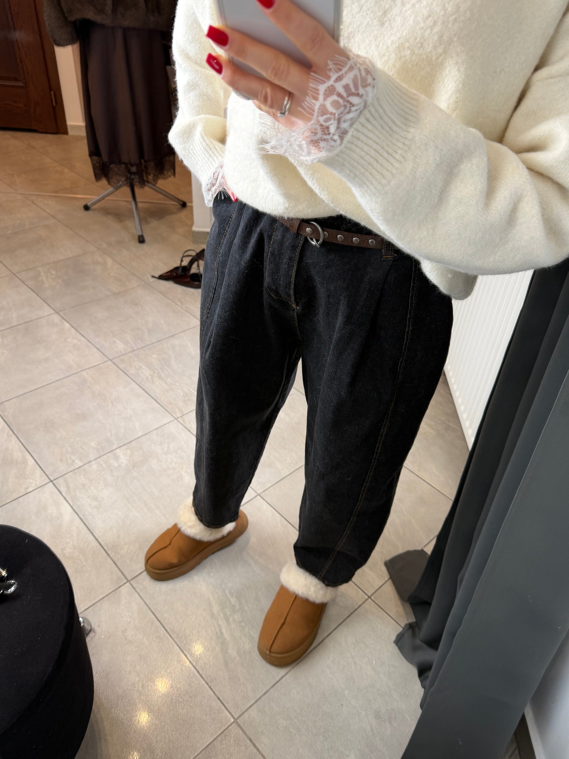 Czarny denim sprawia, że spodnie są niezwykle uniwersalne — świetnie sprawdzą się w codziennych stylizacjach, w pracy, a także w bardziej eleganckich połączeniach. To model, który z łatwością dopasujesz do swetra, koszuli, t-shirtu czy marynarki.