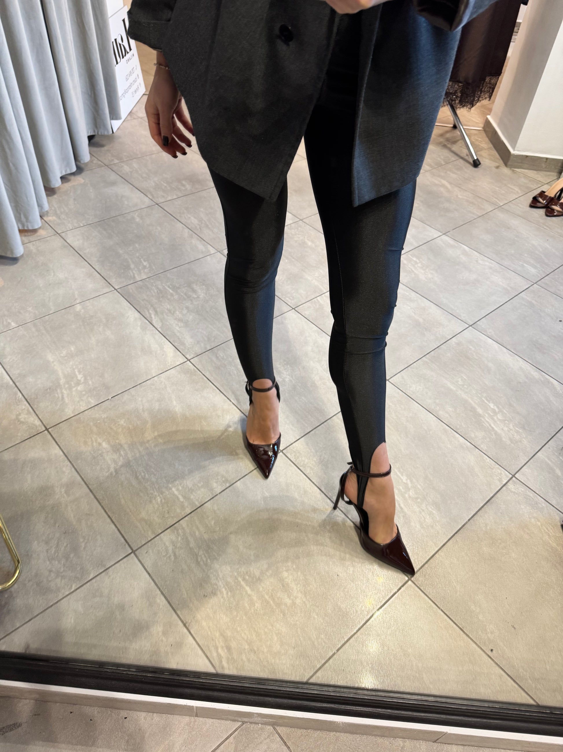 Czarne legginsy z otworem na piętę to połączenie klasy, komfortu i nowoczesnego stylu. Wykonane z elastycznego, kryjącego materiału, doskonale dopasowują się do sylwetki, podkreślając nogi i zapewniając pełną swobodę ruchów.