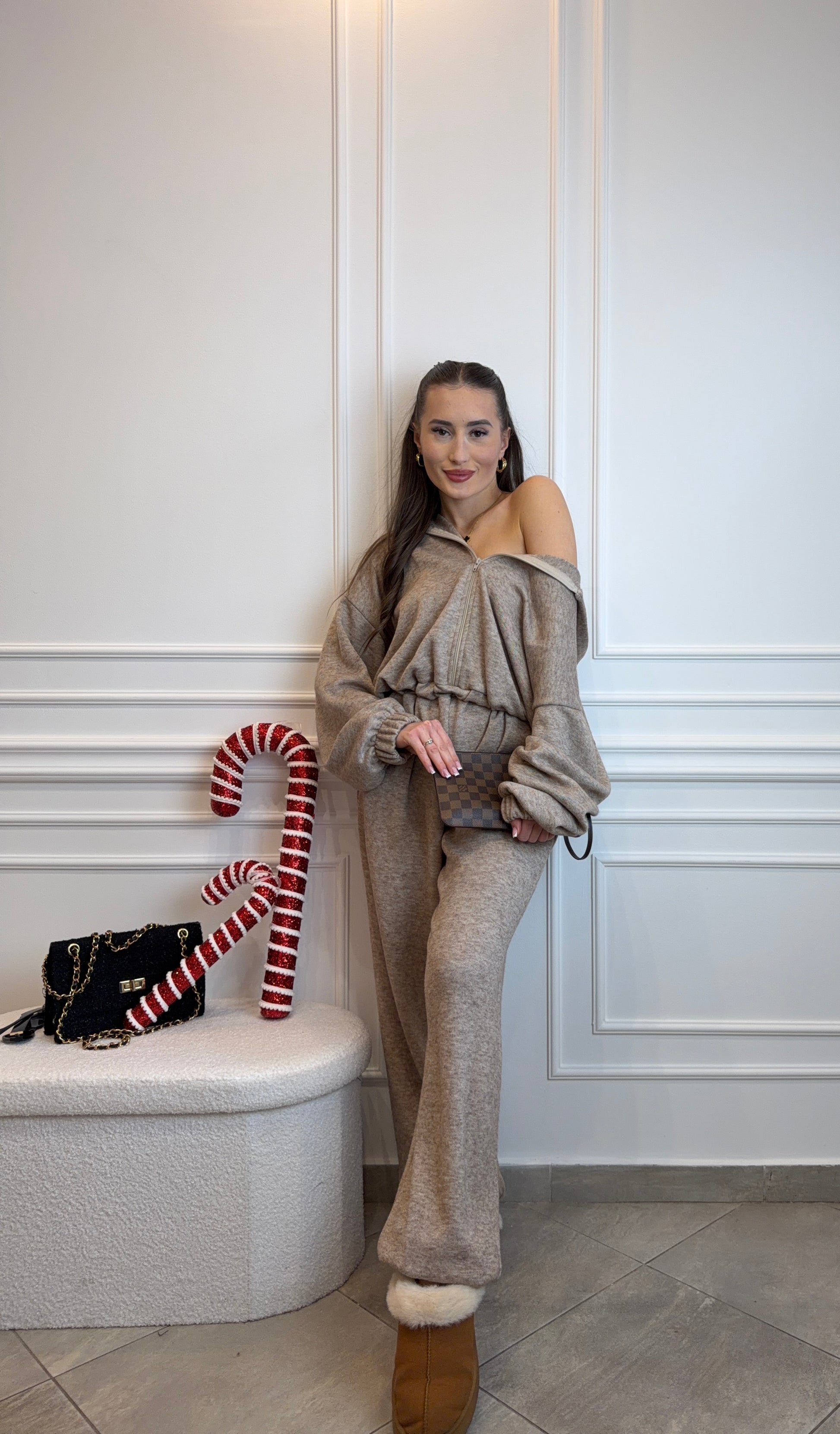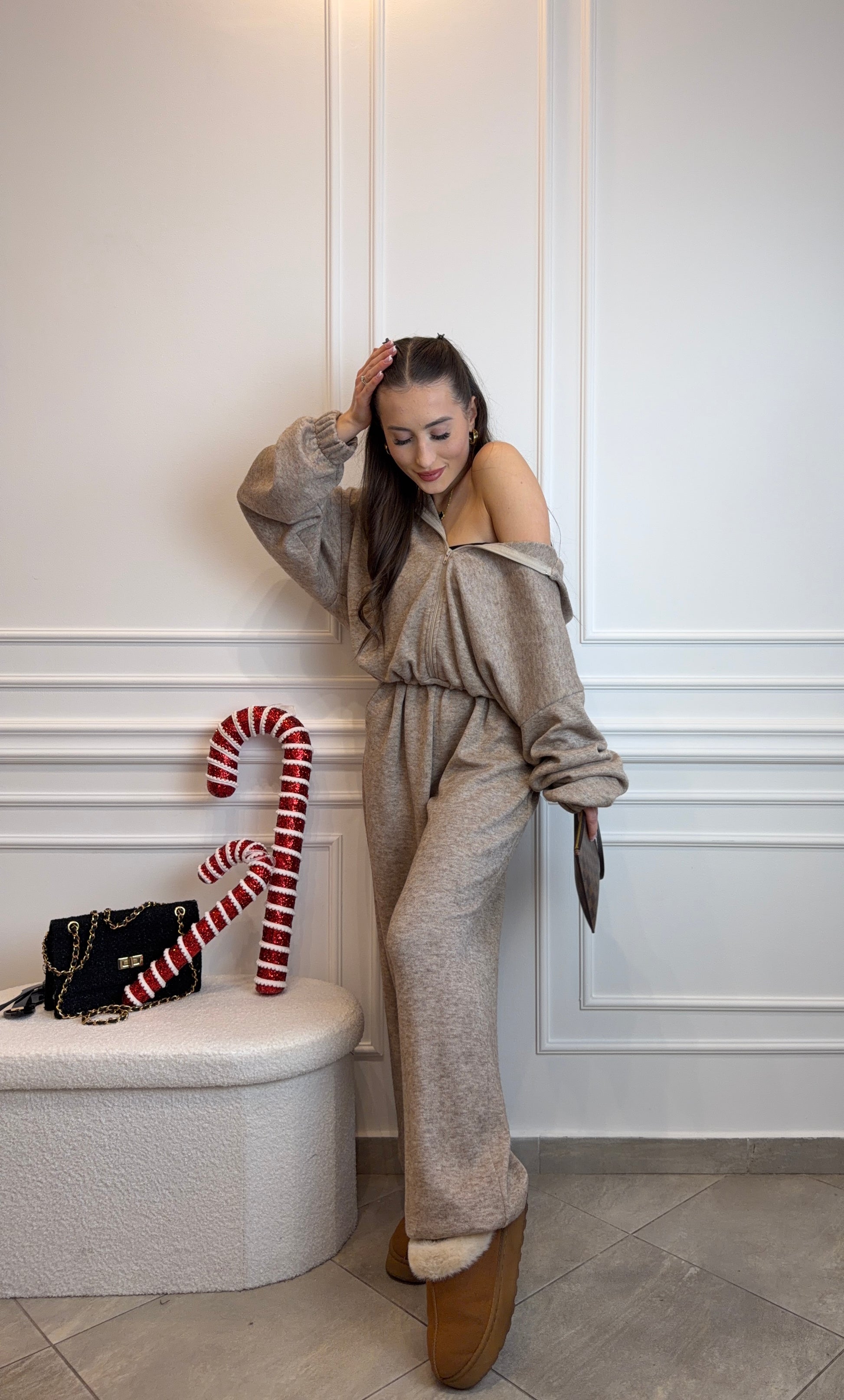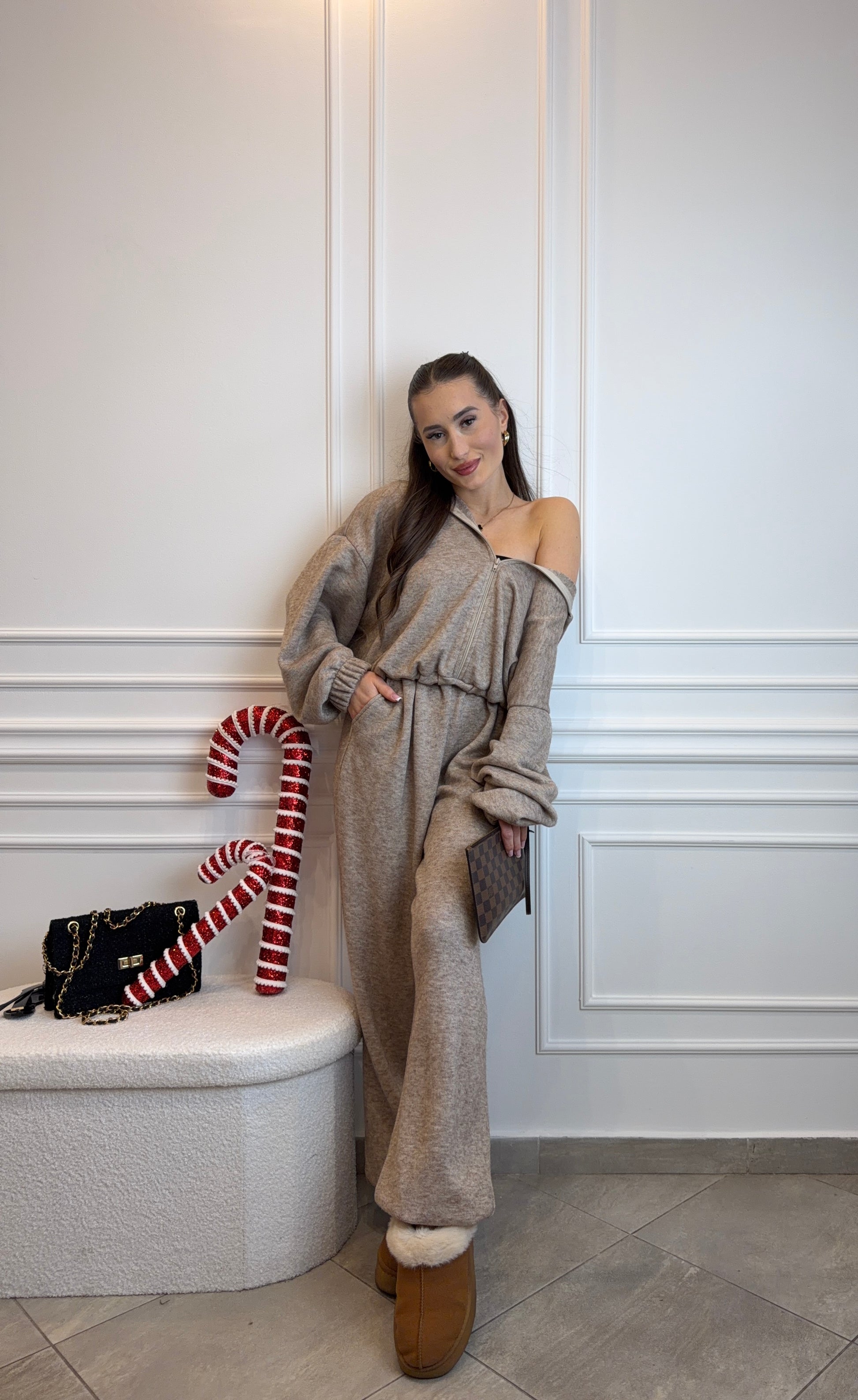 kombinezon z suwakiem w kolorze mocca