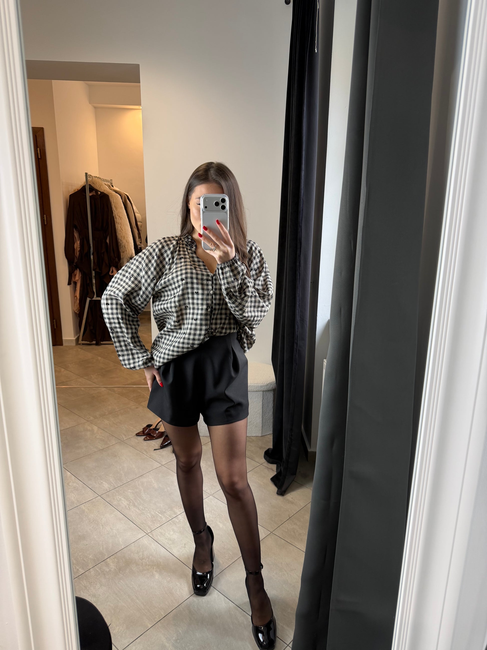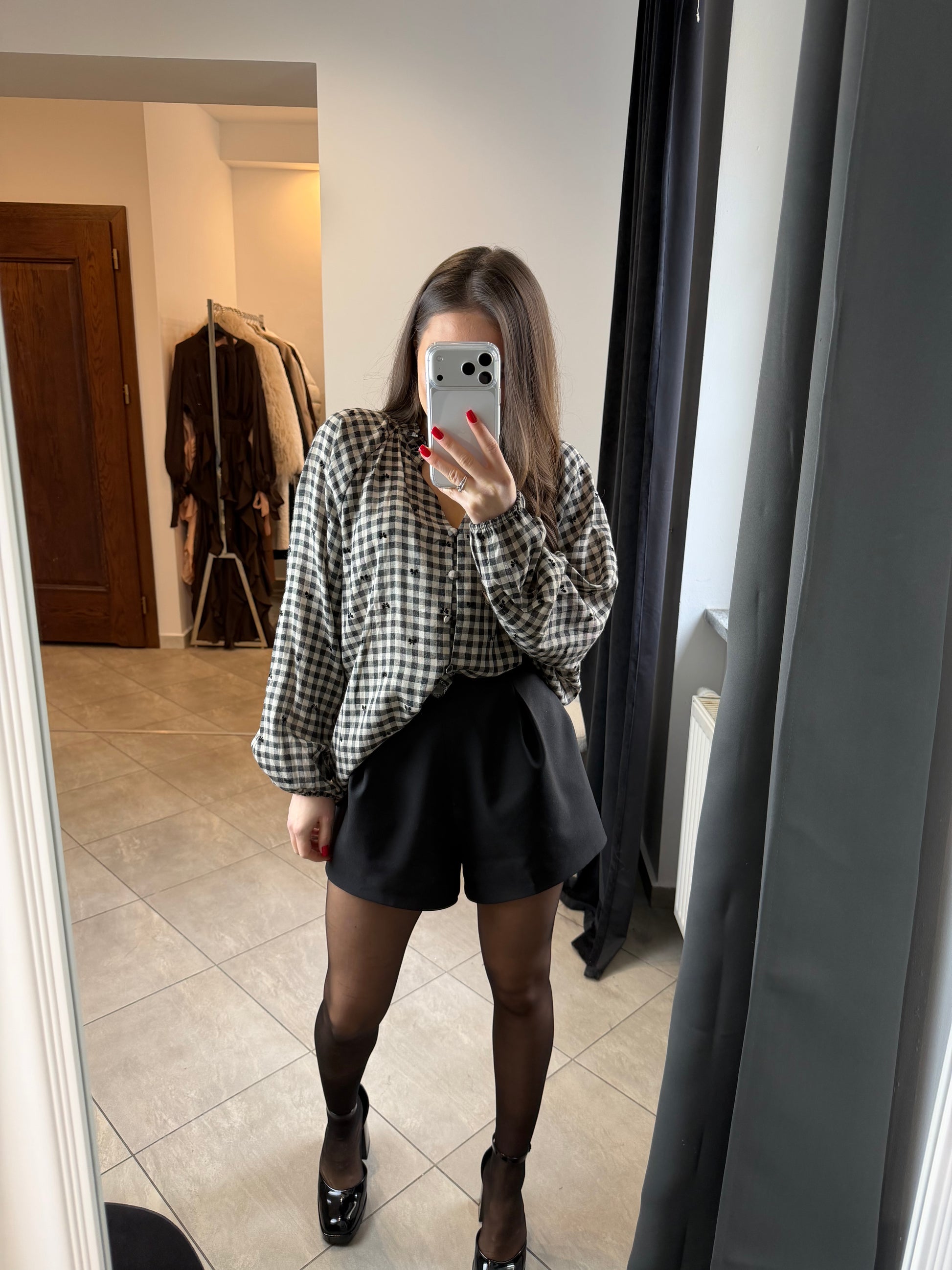 Uniwersalna kolorystyka w odcieniach szarości i czerni sprawia, że z łatwością zestawisz ją z czarnymi szortami, jeansami czy spódnicą — to ponadczasowy wybór do wielu stylizacji.