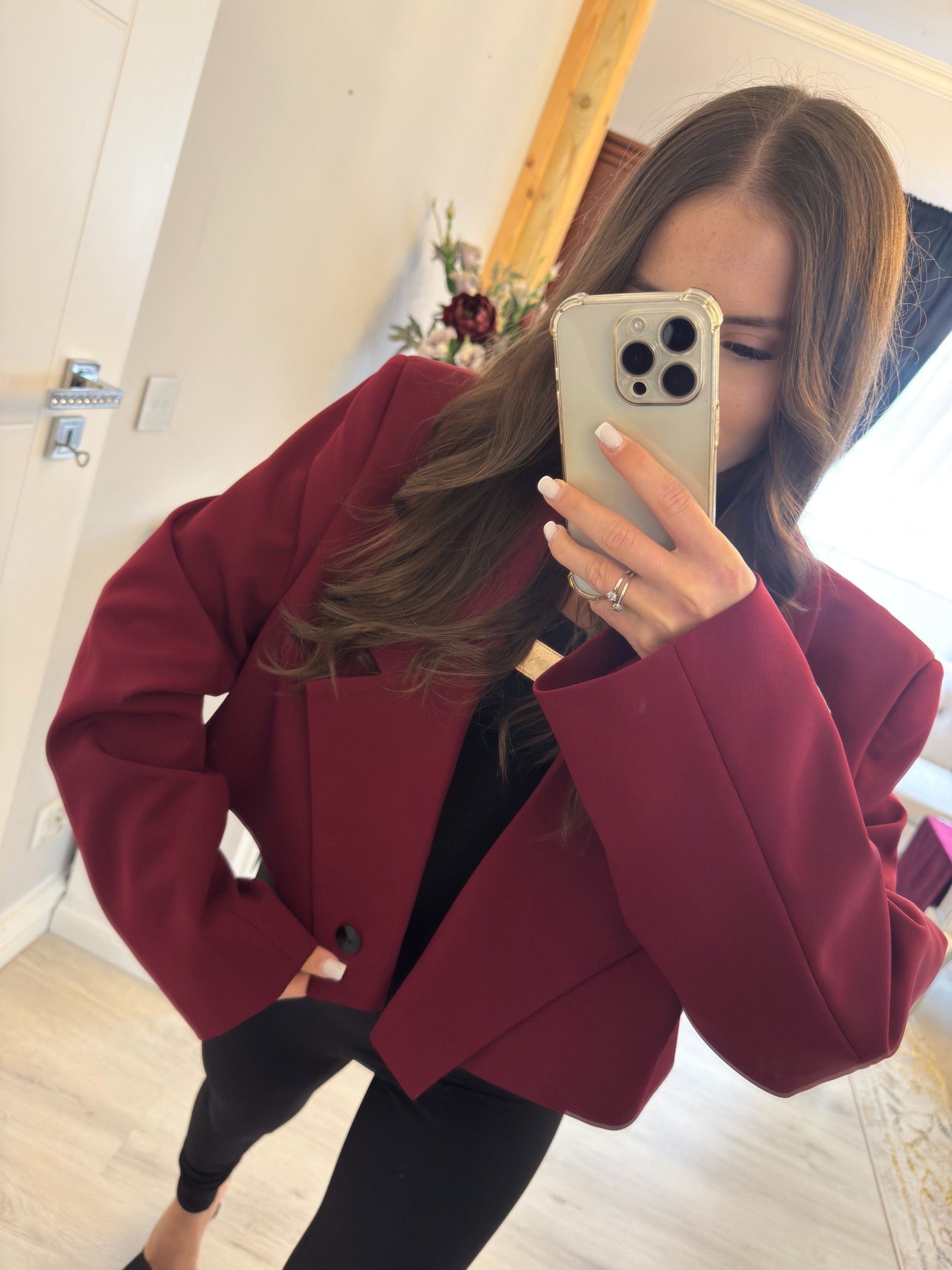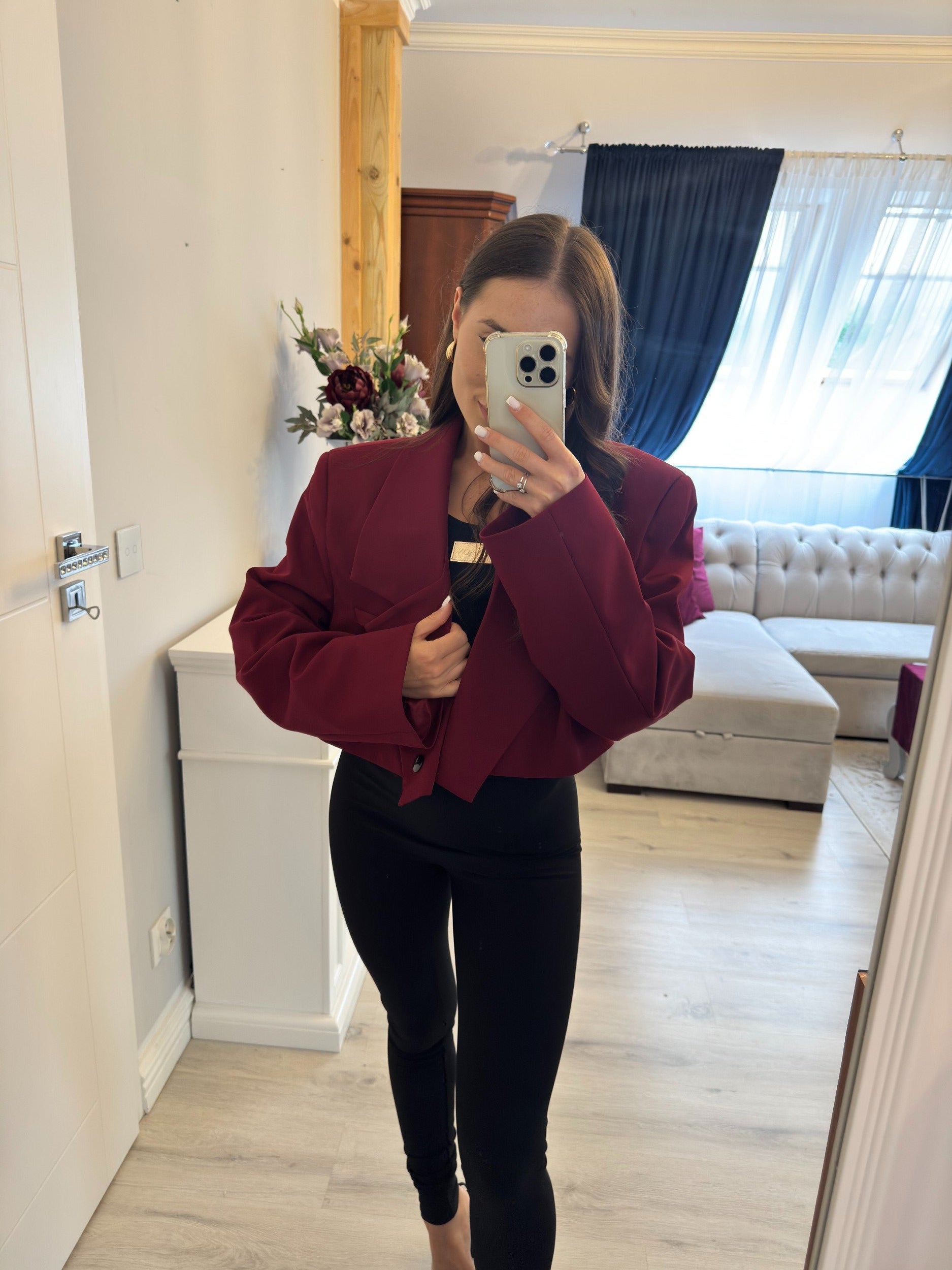 Stylowa marynarka damska w modnym, oversize’owym kroju to idealne połączenie elegancji i nowoczesności. Wyróżnia się głębokim burgundowym kolorem, który doda charakteru każdej stylizacji. Krótszy fason świetnie podkreśla sylwetkę i pasuje zarówno do spodni z wysokim stanem, jak i spódnic.