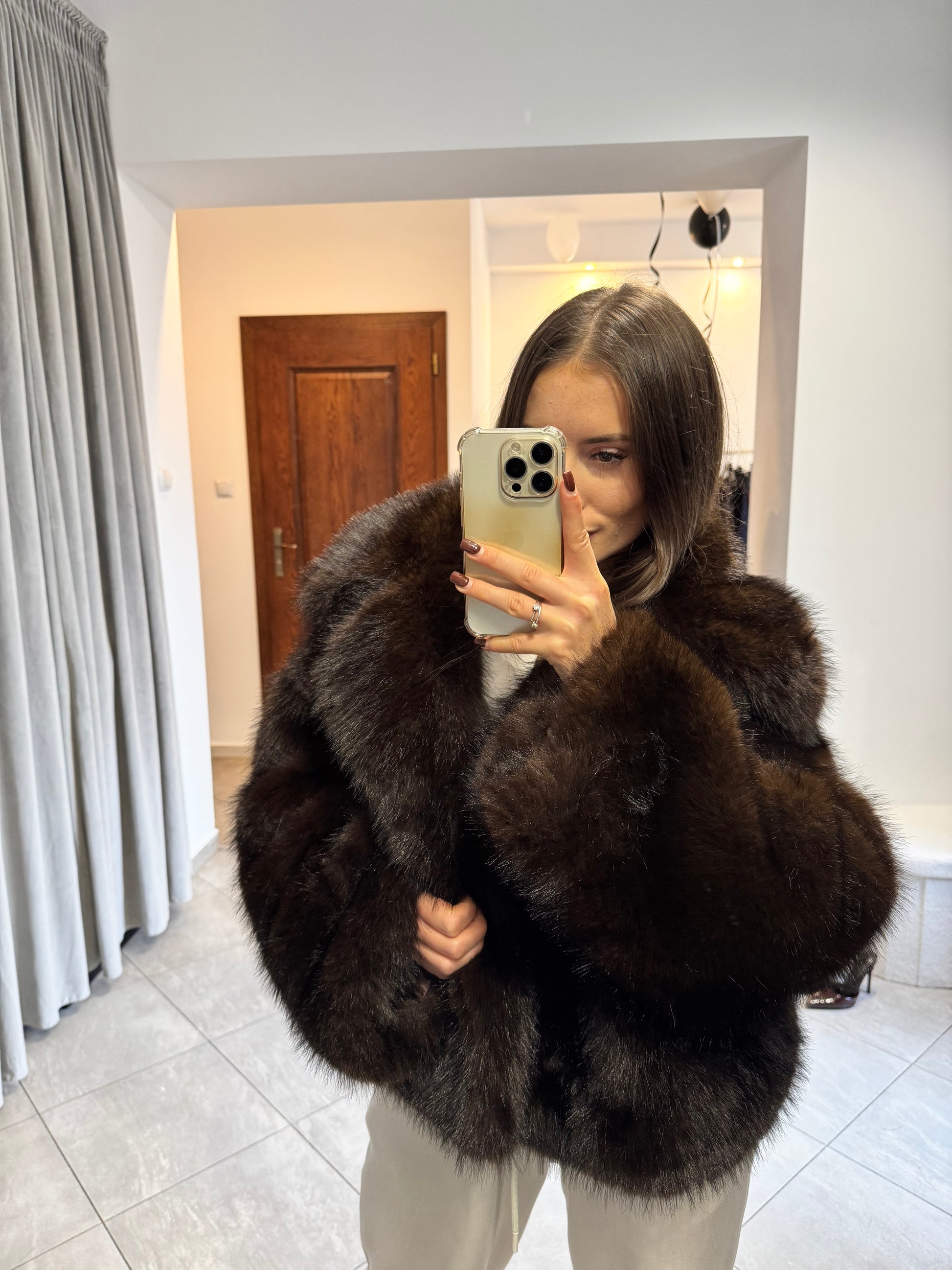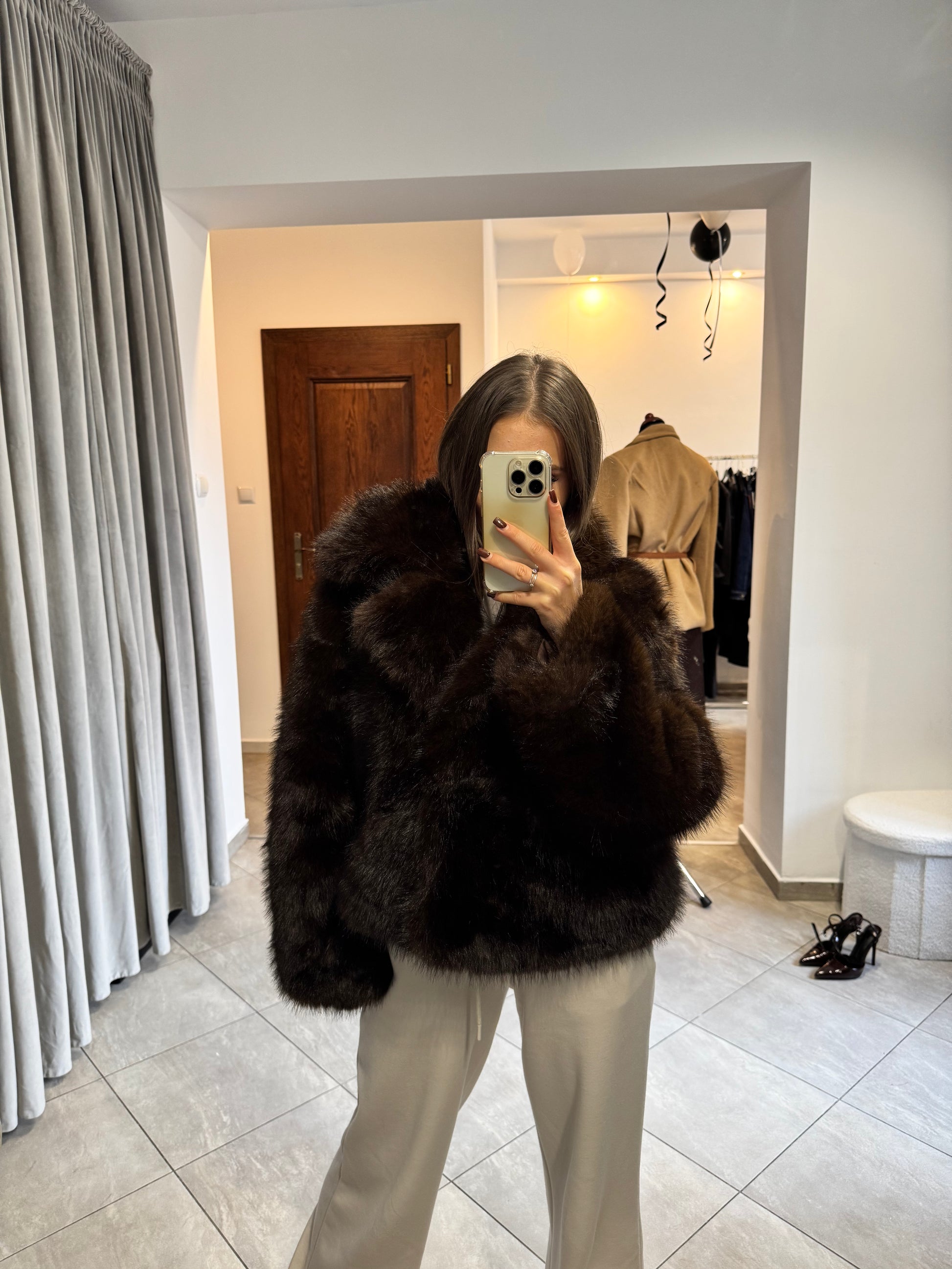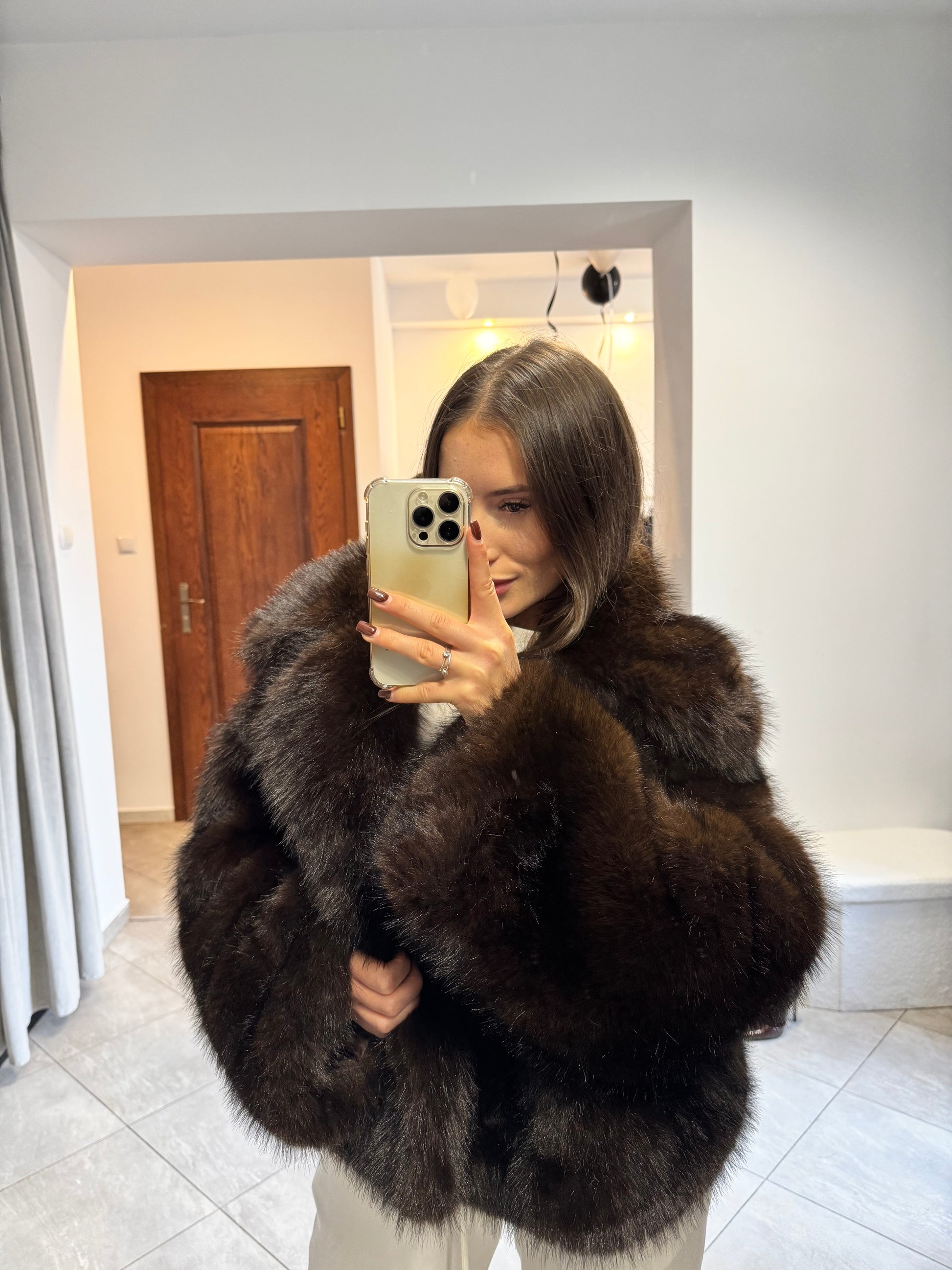 To krótkie brązowe futerko to must-have w jesienno-zimowej garderobie. Miękkie, przyjemne w dotyku i niezwykle stylowe – doda elegancji każdej stylizacji. Krótki krój pięknie podkreśla talię i świetnie komponuje się zarówno z jeansami, jak i sukienką.