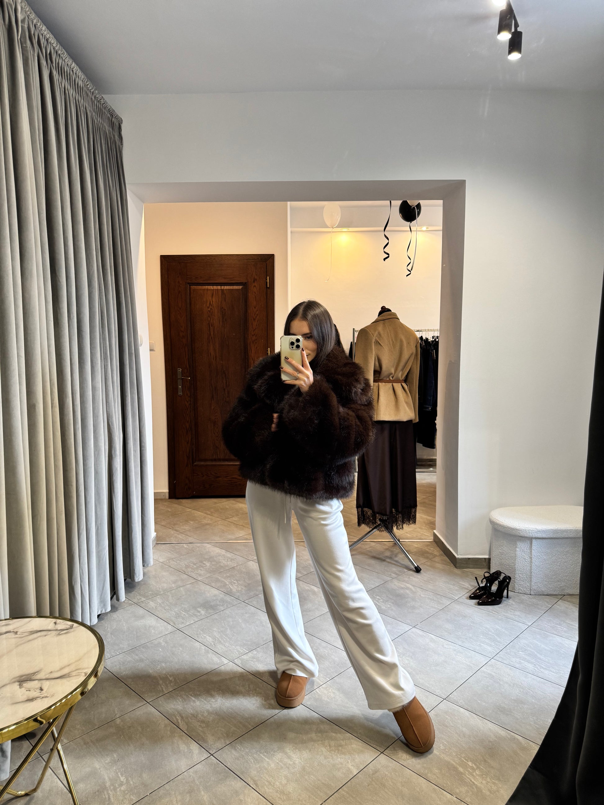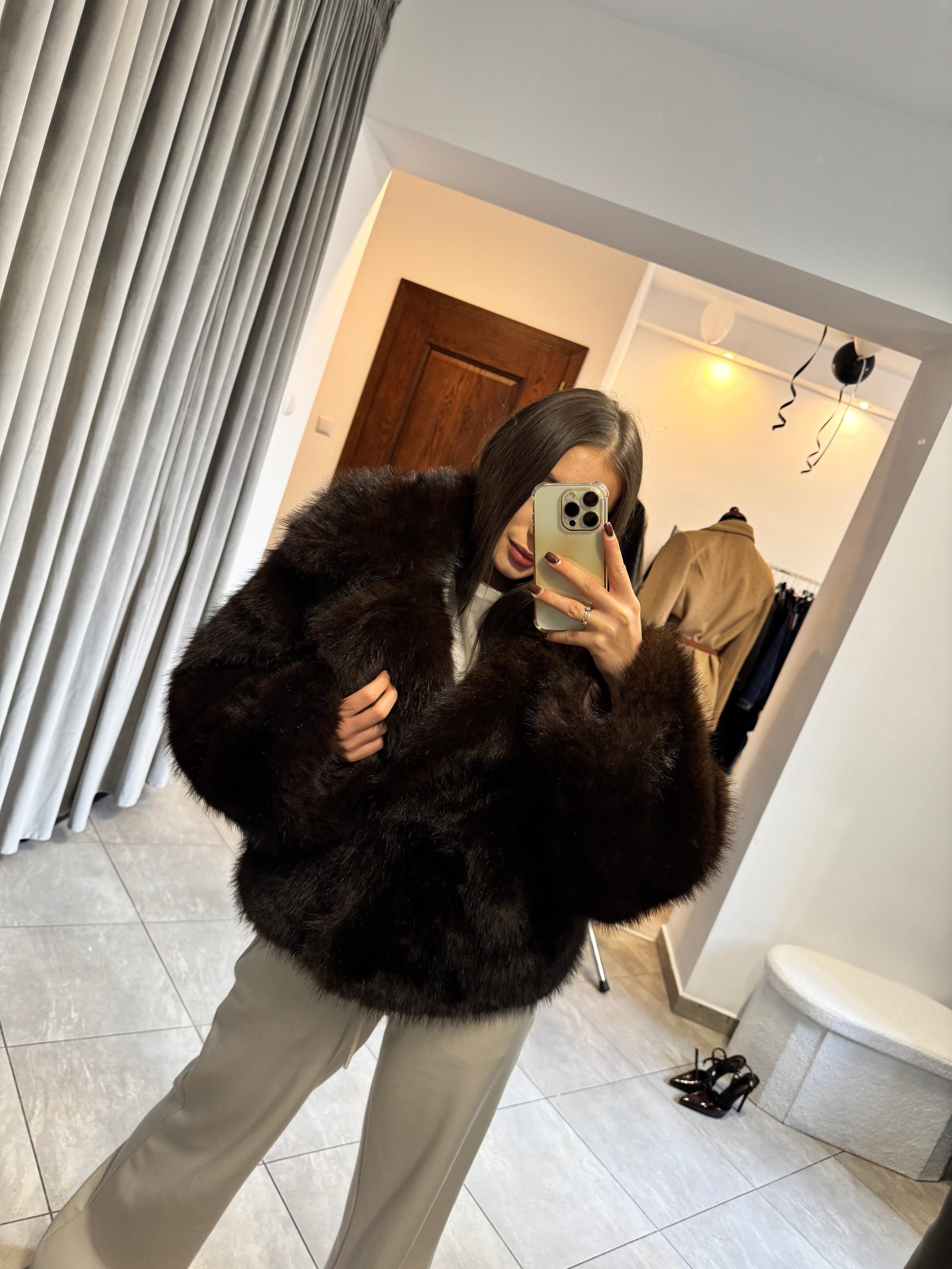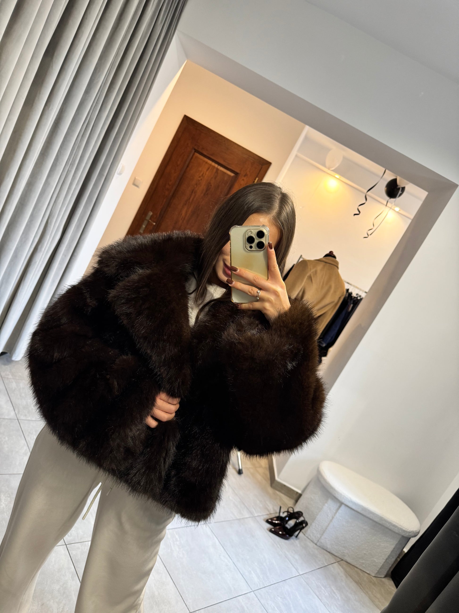 To krótkie brązowe futerko to must-have w jesienno-zimowej garderobie. Miękkie, przyjemne w dotyku i niezwykle stylowe – doda elegancji każdej stylizacji. Krótki krój pięknie podkreśla talię i świetnie komponuje się zarówno z jeansami, jak i sukienką.