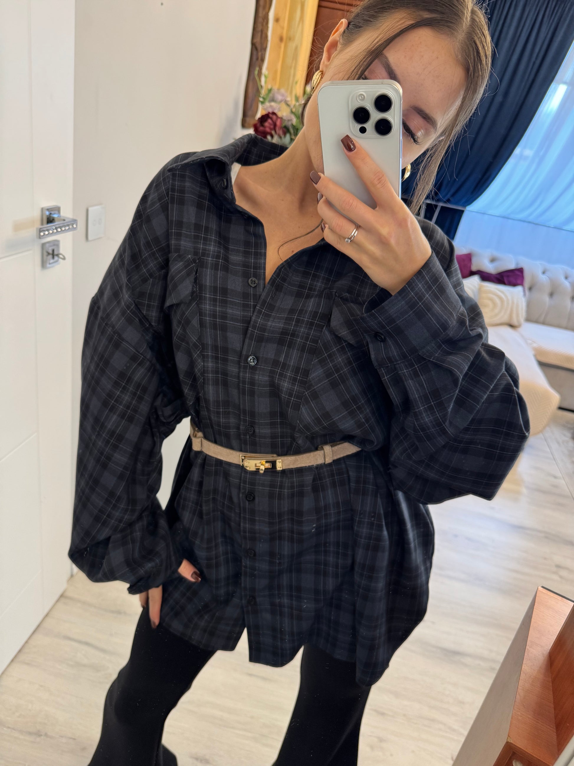 Czarna oversize’owa koszula w kratę to ponadczasowy element garderoby, który łączy w sobie wygodę i styl. Luźny fason zapewnia komfort noszenia i daje wiele możliwości stylizacji – możesz ją zestawić z jeansami, legginsami, a nawet nosić jako lekką narzutkę. Subtelna krata w odcieniach czerni i szarości sprawia, że koszula prezentuje się elegancko i pasuje na wiele okazji.