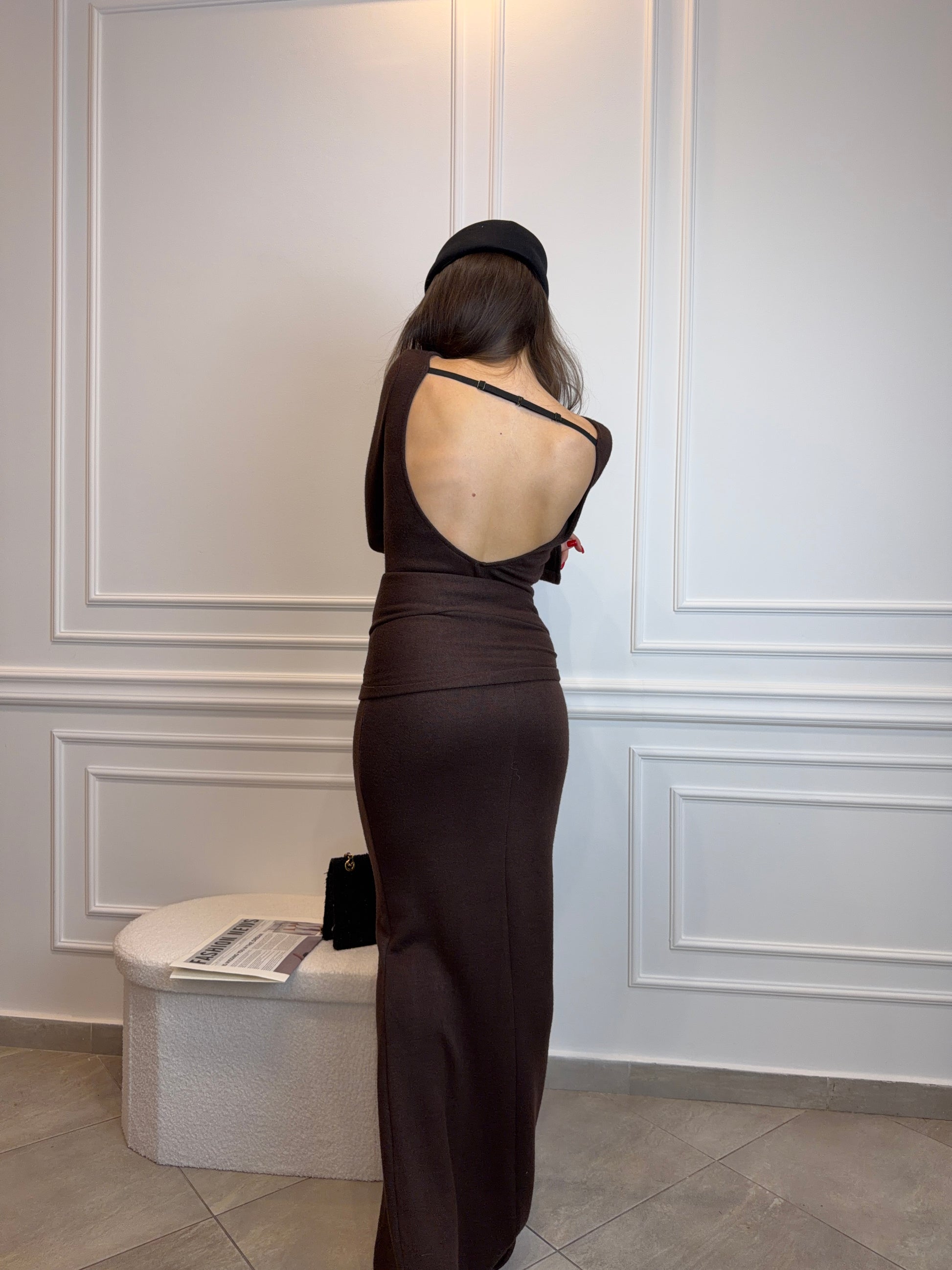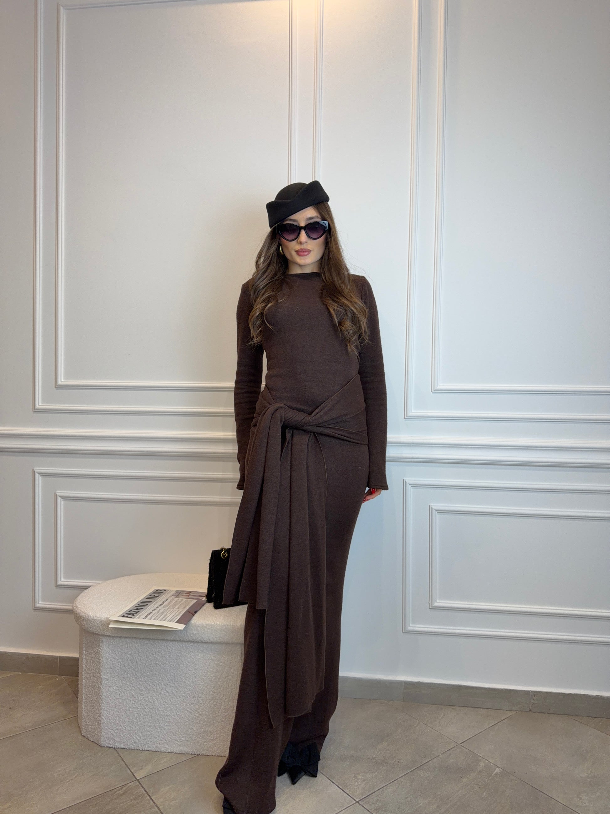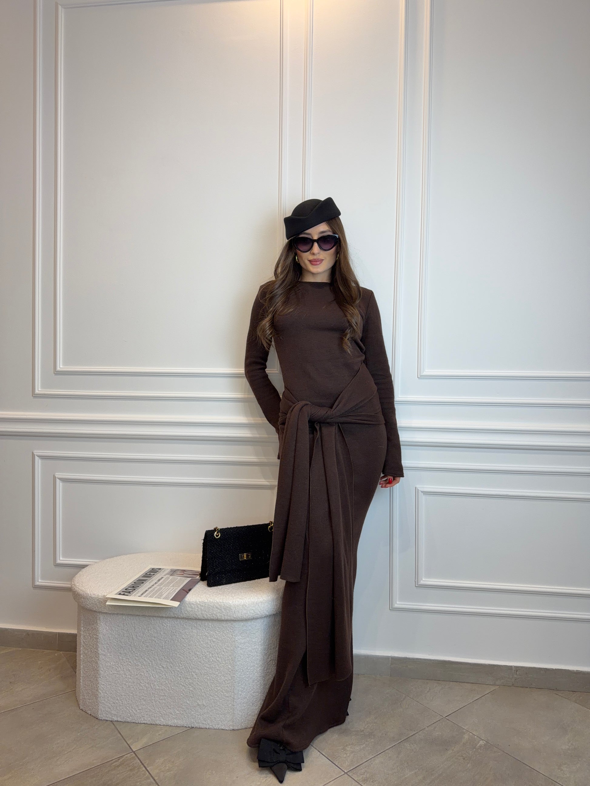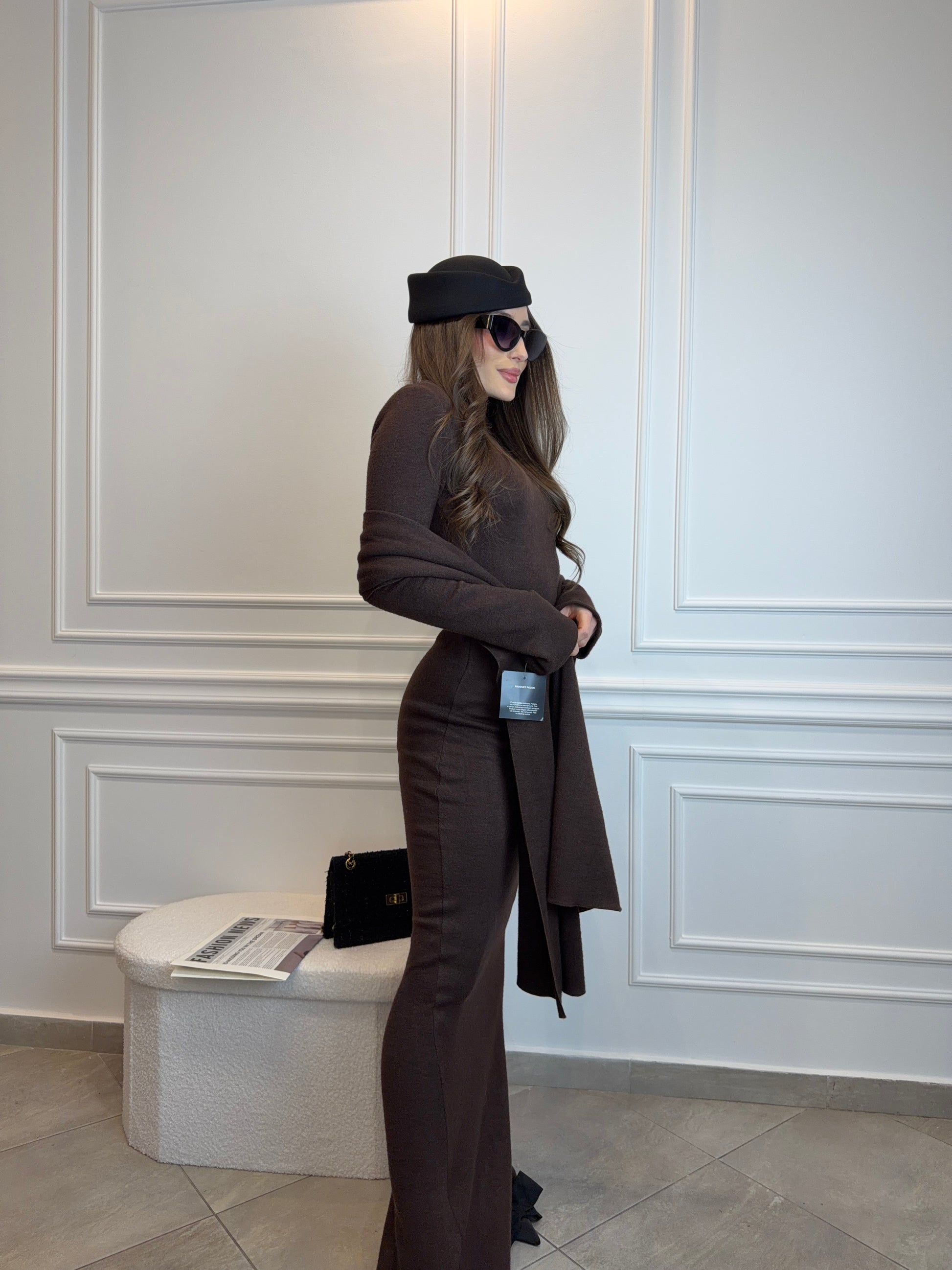 Sukienka Maxi z Długim Szalem – Belluci Czekoladowy Brąz