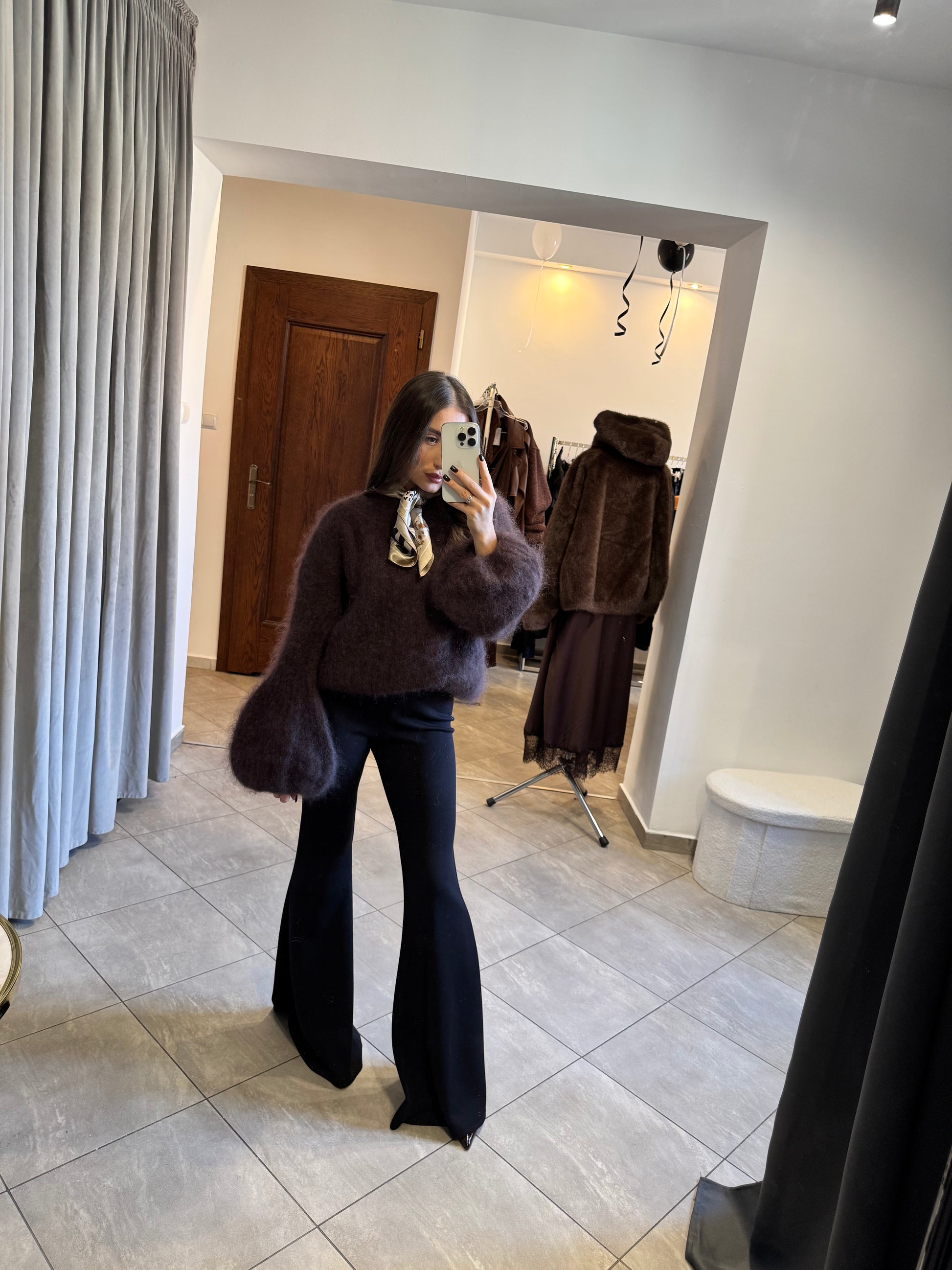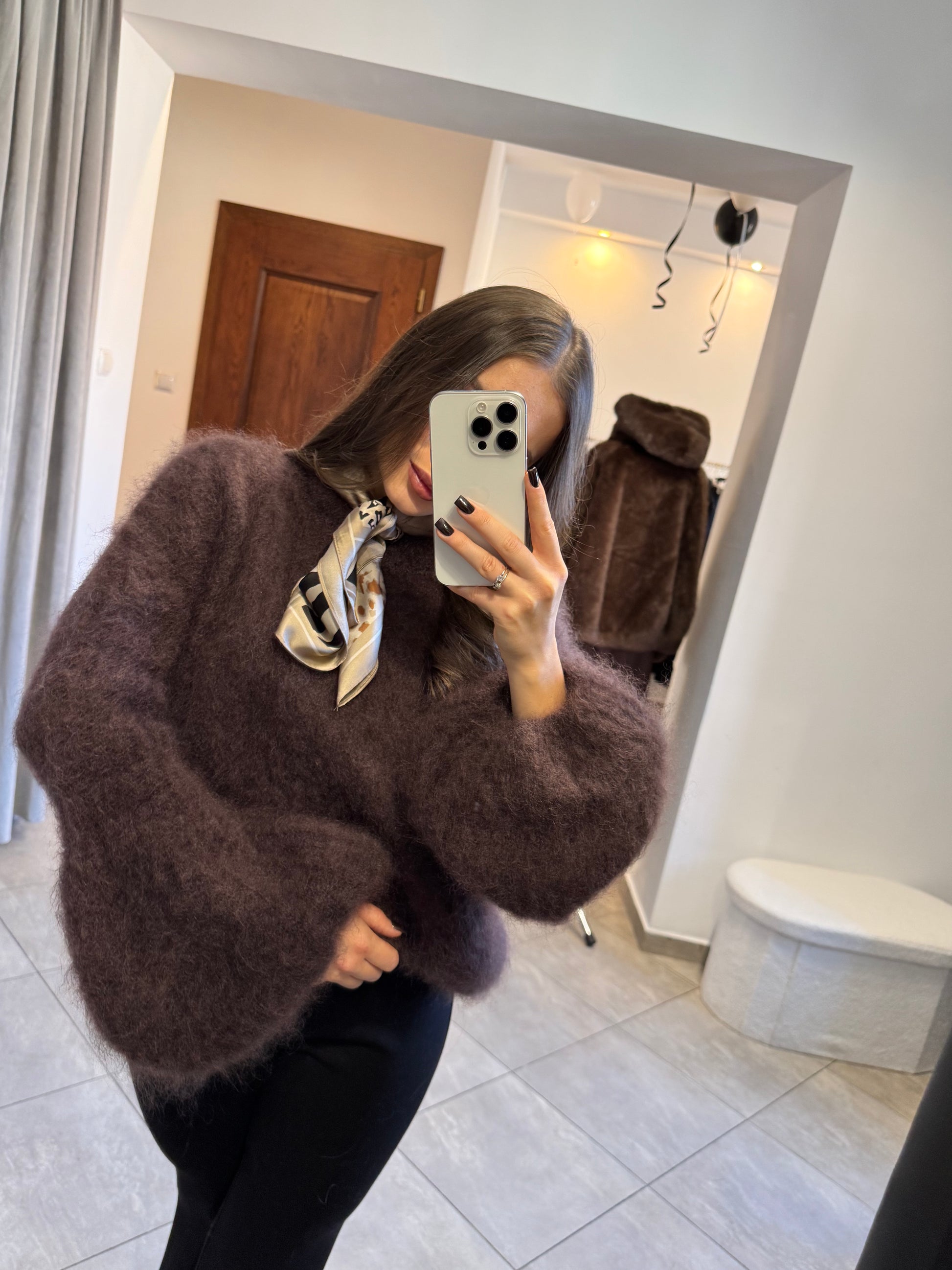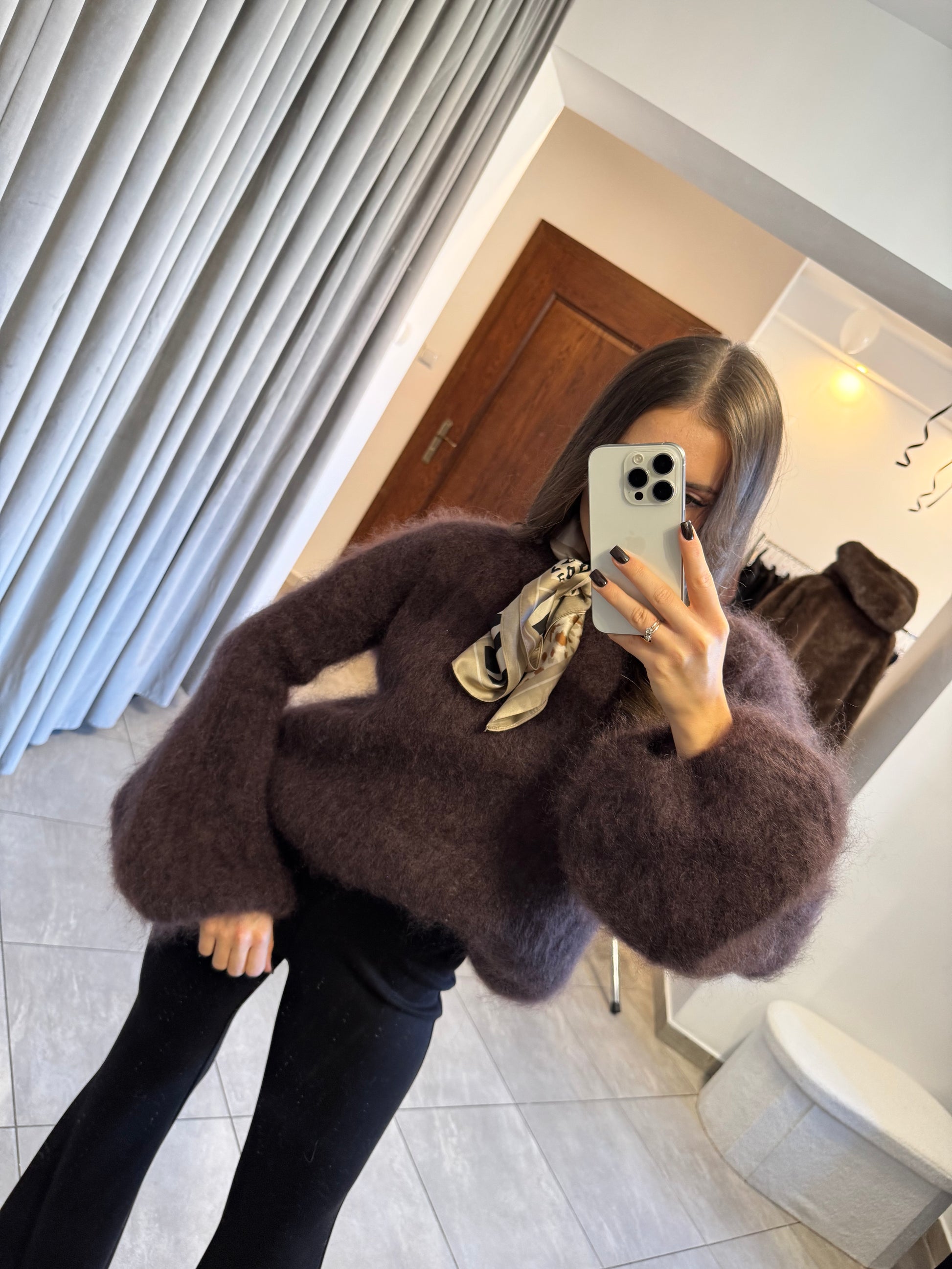 Sweter z luksusowego kid moheru z szerokimi rękawami – czekoladowy