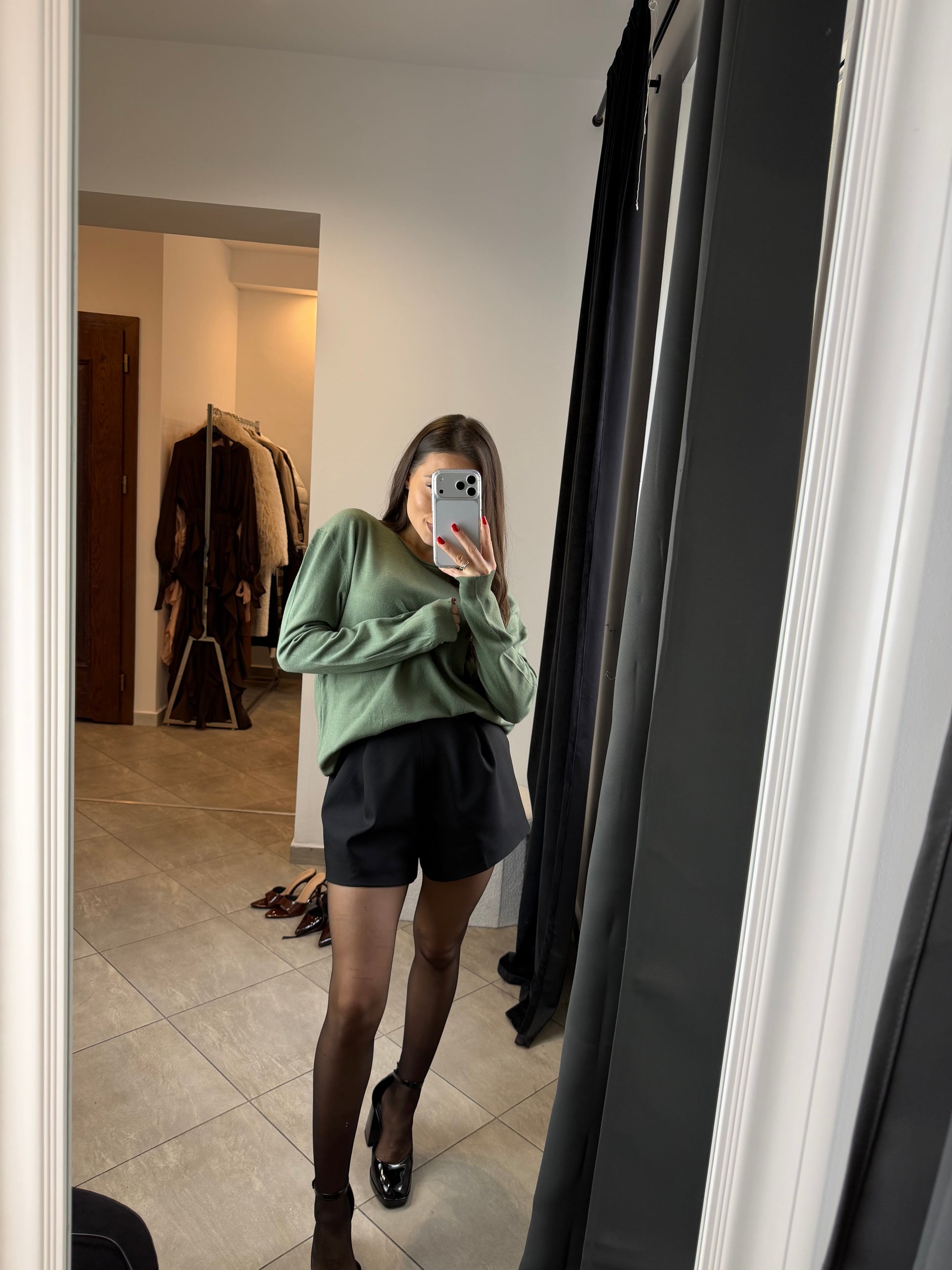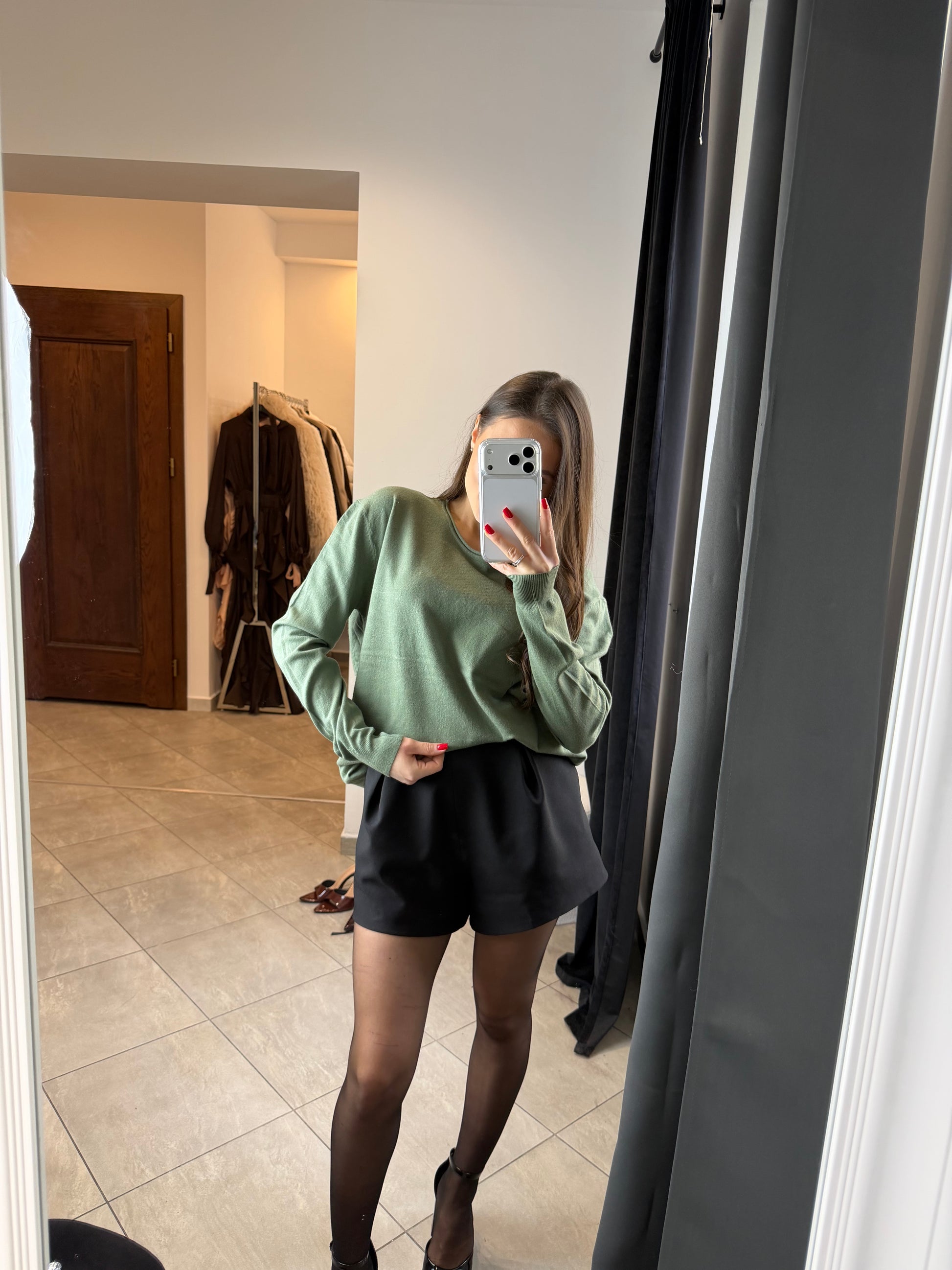 Delikatny, sweterek w odcieniu stonowanej zieleni, idealny na co dzień. Wykonany z miękkiego i przyjemnego w dotyku materiału, który zapewnia komfort noszenia oraz subtelnie układa się na sylwetce. Długie rękawy i klasyczny dekolt nadają mu ponadczasowy, minimalistyczny charakter.
