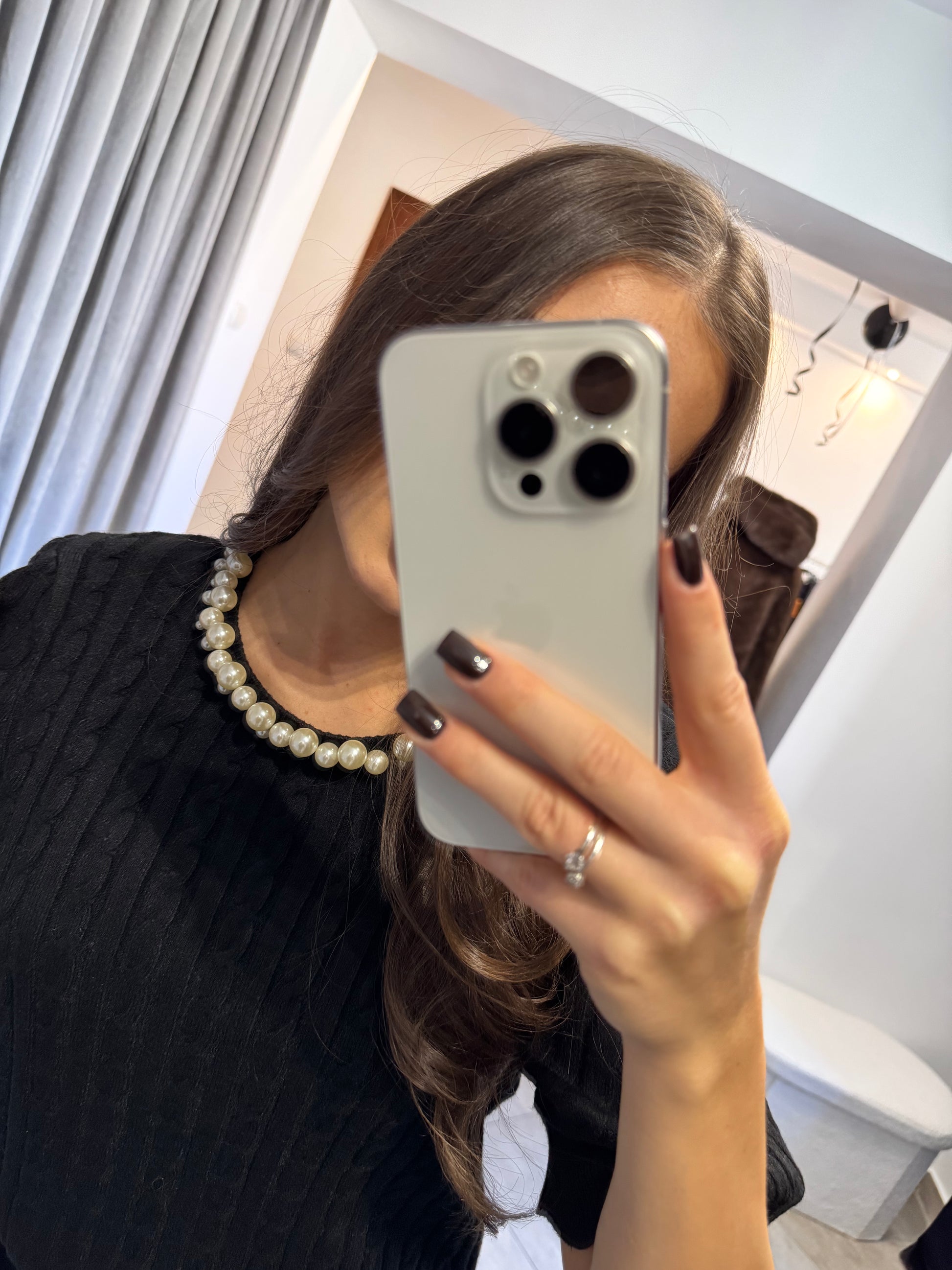 Elegancki, a zarazem niezwykle uniwersalny sweterek z krótkim rękawem, wykonany z miękkiej dzianiny o delikatnym, prążkowanym splocie. Klasyczna czerń nadaje mu ponadczasowy charakter, dzięki czemu sprawdzi się zarówno w codziennych, jak i bardziej formalnych stylizacjach.